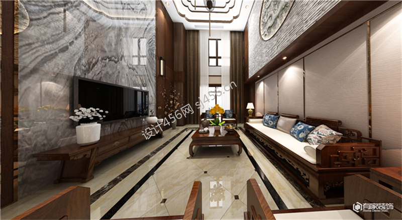 泰禾金尊府380平别墅中式风格挑高客厅装修效果图