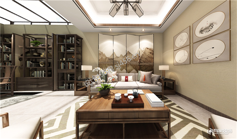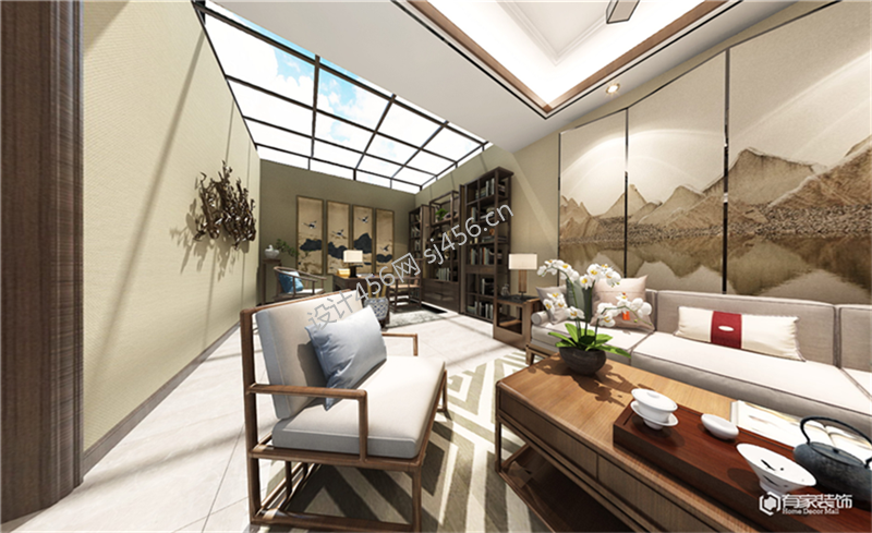 泰禾金尊府380平别墅中式风格书房茶室装修效果
