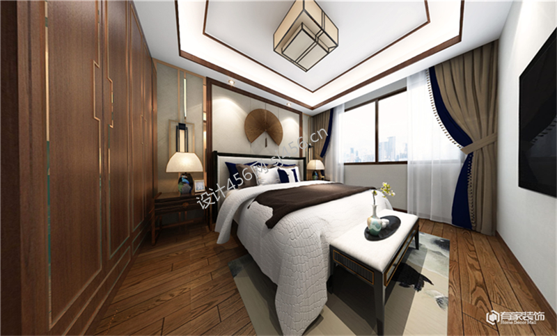 泰禾金尊府380平别墅中式风格卧室回字形吊顶设计
