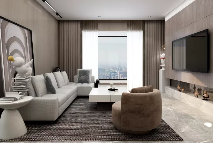 中庚红鼎天下轻奢风格124平米三居室设计效果图案例
