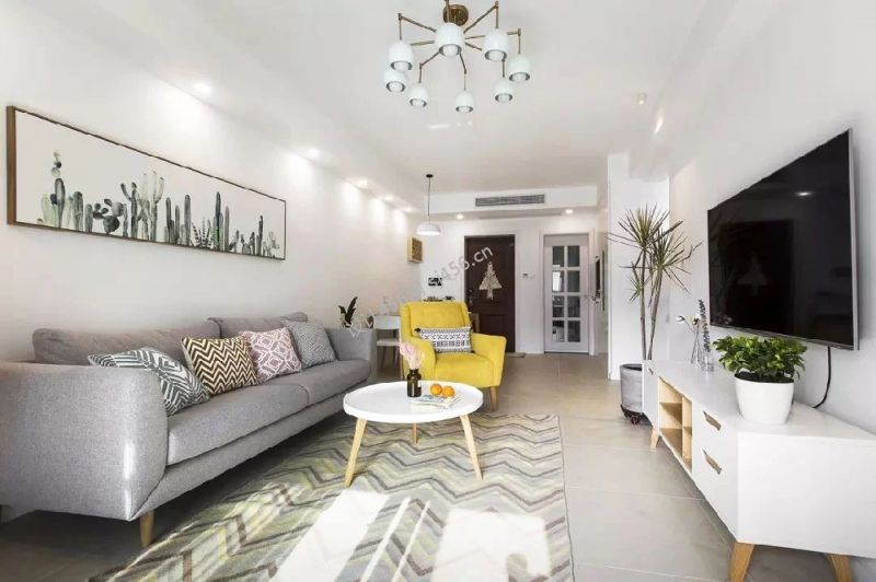 浦新小区极简风68平米二居室装修设计案例风效果图