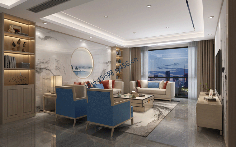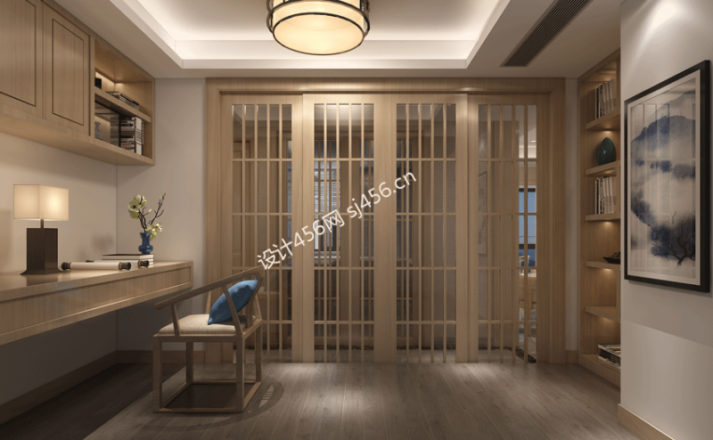世茂海峡城新中式风格200平米四居室装修案例风效果图
