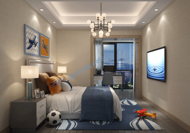 蓝光玖榕台现代风格三居室128平米设计图案例风效果图