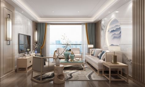 中天翡翠城新中式风格140平米装修案例风效果图