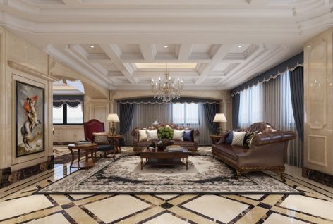 欧式风格220平米客厅吊顶装修效果图