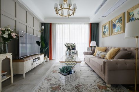 世茂云珑美式风格98平米二居室装修设计案例风效果图