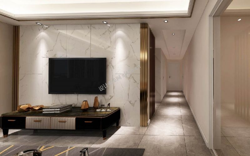 欧式风三居室客厅走廊背景墙设计效果图