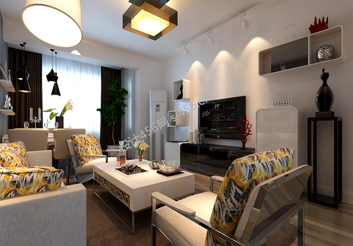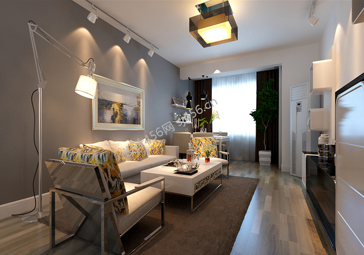 100平两居现代风格创意落地灯设计效果