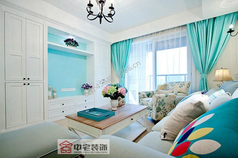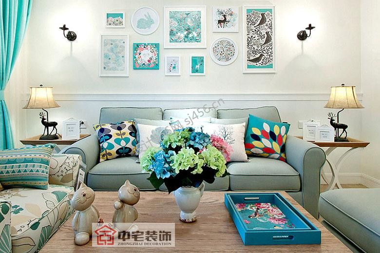 110平美式风格室内客厅装修效果图片赏析