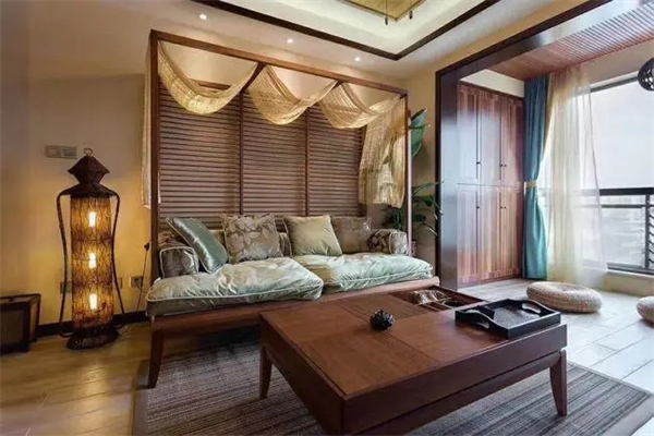 东南亚风格是一个结合东南亚民族岛屿特色及精致文化品位的设计,其重视在异国情调下享受极度舒适的氛围,注重细节和软装饰,喜欢通过对比达到强烈的效果。它汲取东西方经典元素结合当地风俗习惯诠释出新的风格理念。东南亚风格,以其崇尚自然的精神,迎合了时下人们追求健康、环保、以及个性化的价值理念。它的特点是将简洁与复杂、典雅与艳丽有机地结合在一起,它强调了休闲、轻松与舒适;在家具选配上,以木材、藤、竹等原料为主,运用色彩绚丽的靠包、窗帘、幔帐与天然材质的各种家具相互呼应,用多彩的颜色营造出一个曼妙的氛围。在色彩上,很重要的一个特点就是色彩绚丽,颜色丰富多彩。