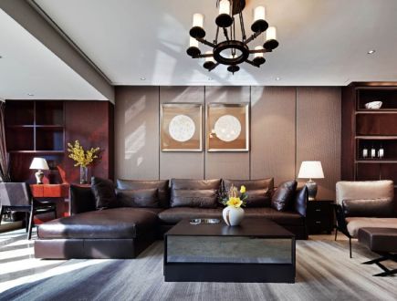 博仕后龙港城110㎡现代中式风格三居室装修案例风效果图