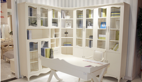 红棕色的家具通常会出现在中式风格以及欧式风格的书房当中,红棕色的家具大多数都是采用珍贵的实木为原材料,所以相对于其他的材质家具来说,价格上要高出很多。但是红棕色的书房家具适用的年限时间也是很长的,但在保养上也是不能忽略的。因为木质的家具在潮湿的环境当中容易出现发霉现象,对于珍贵的书房家具来说,保养就显得更加尤为重要了。