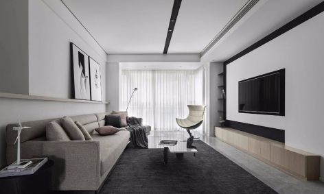 现代风三居室115平米客厅沙发背景墙设计效果图