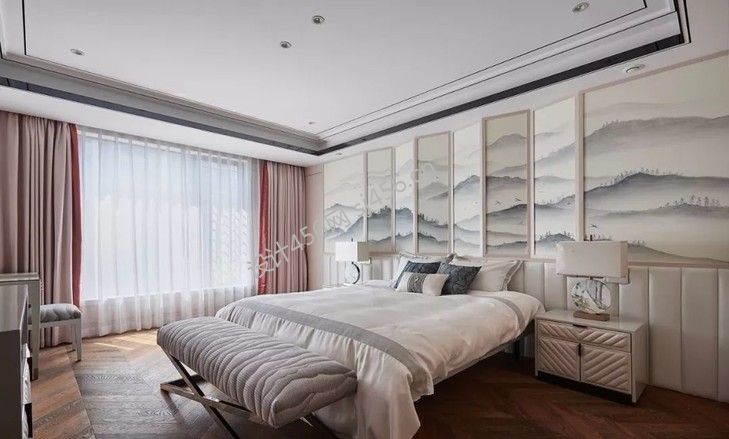 四居室150平卧室床尾凳设计效果图