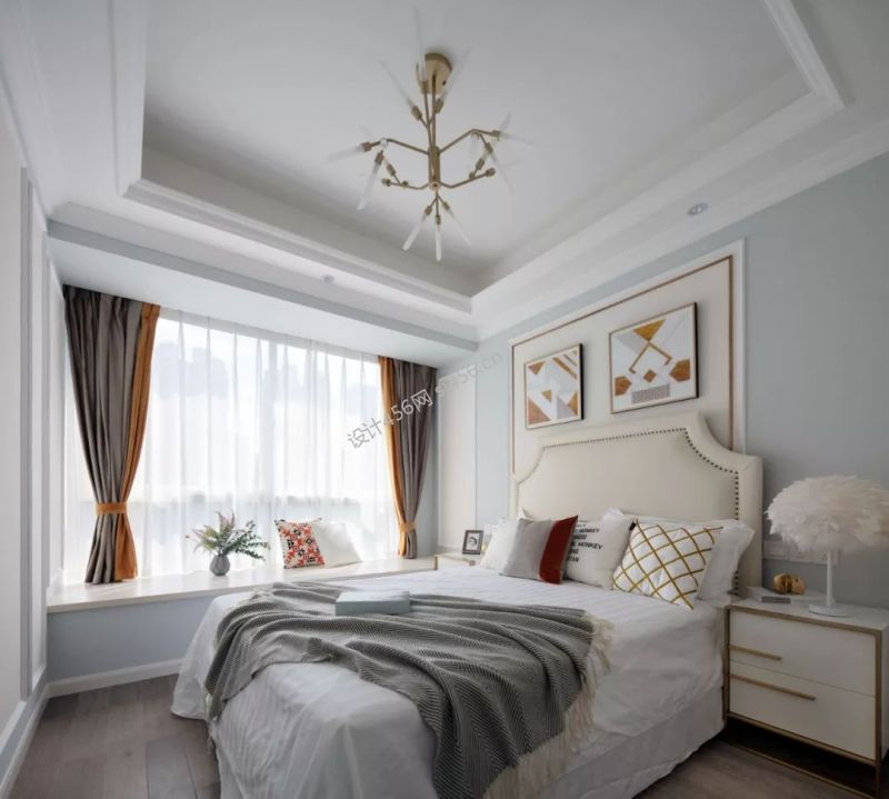 轻奢风格三居室卧室吊灯装饰装修效果图