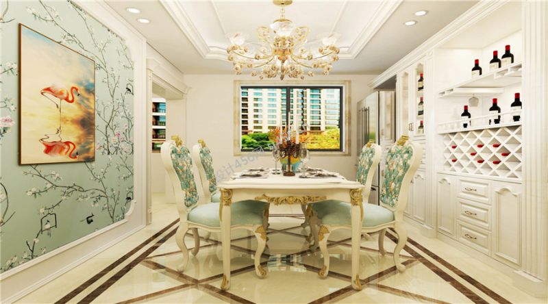 新力帝泊湾130平米三居现代餐厅背景墙装修设计效果图