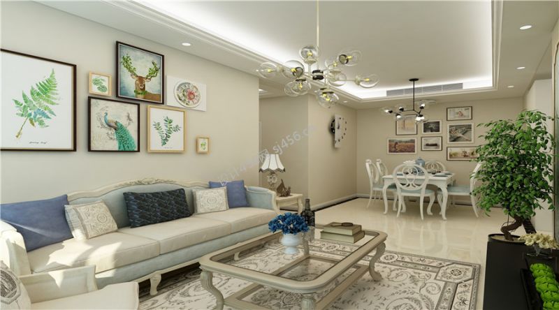 君兰半岛100平米二居现代沙发背景墙装修设计效果图
