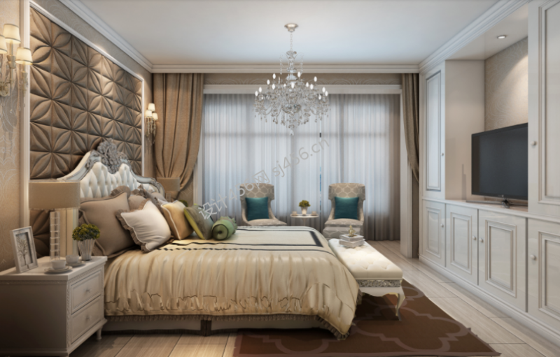 棕榈泉国际140平米三居现代卧室吊顶装修设计效果图