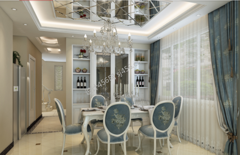 棕榈泉国际140平米三居现代餐厅吊顶装修设计效果图