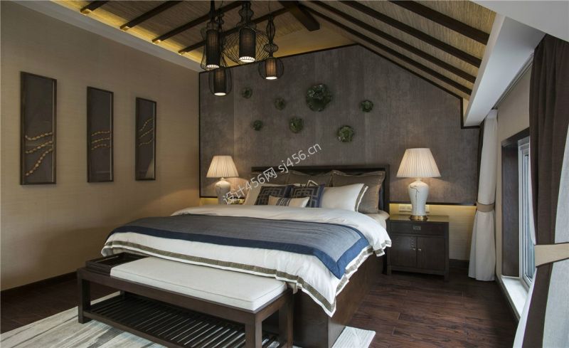 350平米新中式风格别墅卧室吊顶装修设计效果图