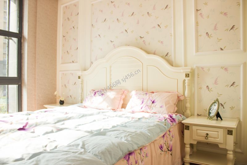 112平三居法式风格卧室床头背景墙装修设计效果图