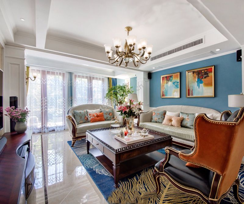 融耀江滨御景140平米四居美式混搭风格客厅装修设计效果图