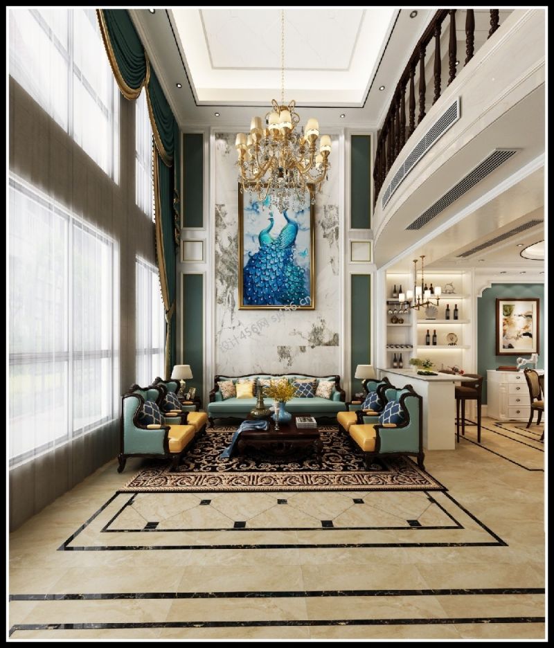 创嘉别墅300平美式风格沙发背景墙装修设计效果图欣赏