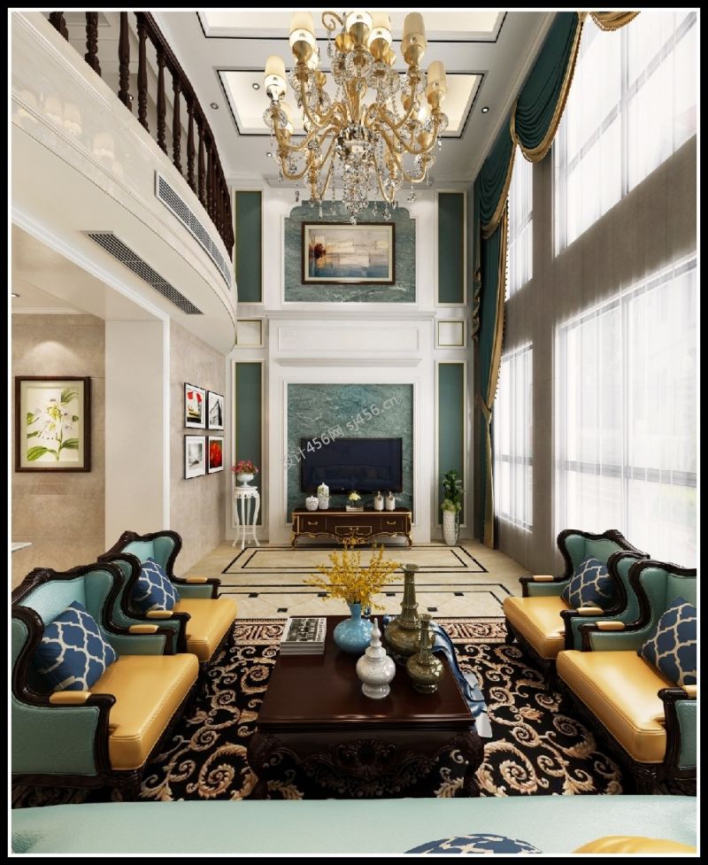 创嘉别墅300平美式风格客厅装修设计效果图欣赏