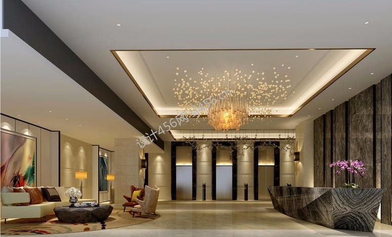 现代简约风格5000平米酒楼前台吊顶装修效果图