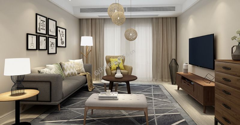 鹏欣水游城126平三居室装修北欧风格风效果图