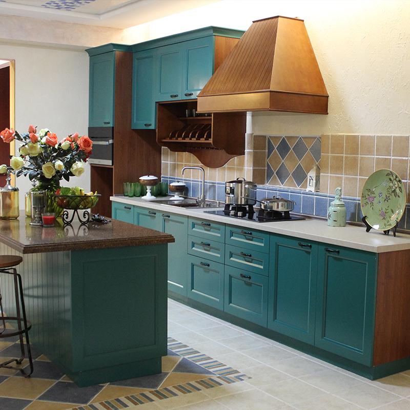 喜欢清新文艺厨房风格的可以选择木质,木头给人比较原始,温暖自然的感觉,看起来也更温和舒适。木质的不管是实木还是防火板,都要注意的是不要直接把滚烫的锅子放上去,清理一定要勤快。