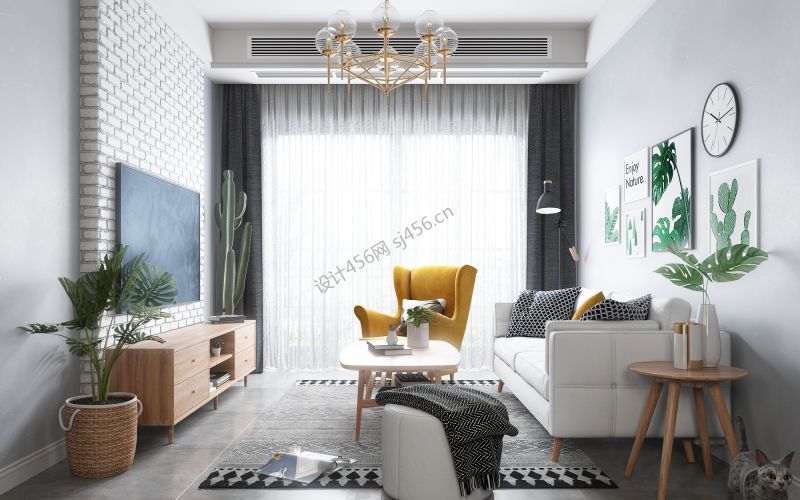 卓越君城三居北欧风格装修案例风效果图