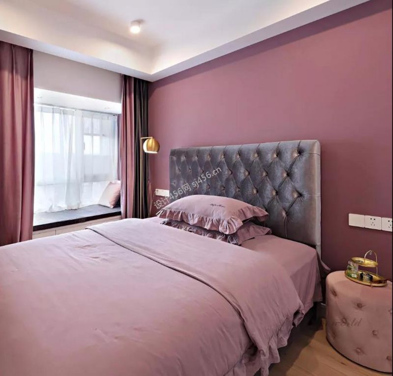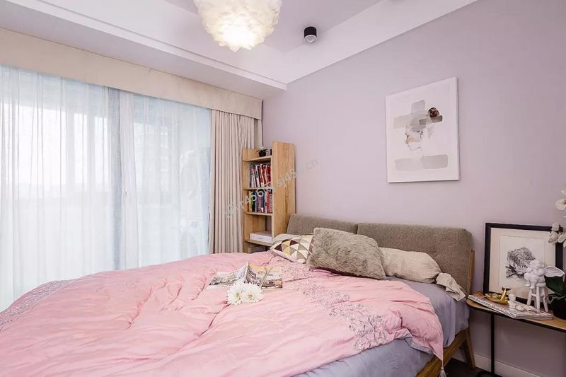 天行滨湖一号三居128平温馨卧室窗帘装饰效果图