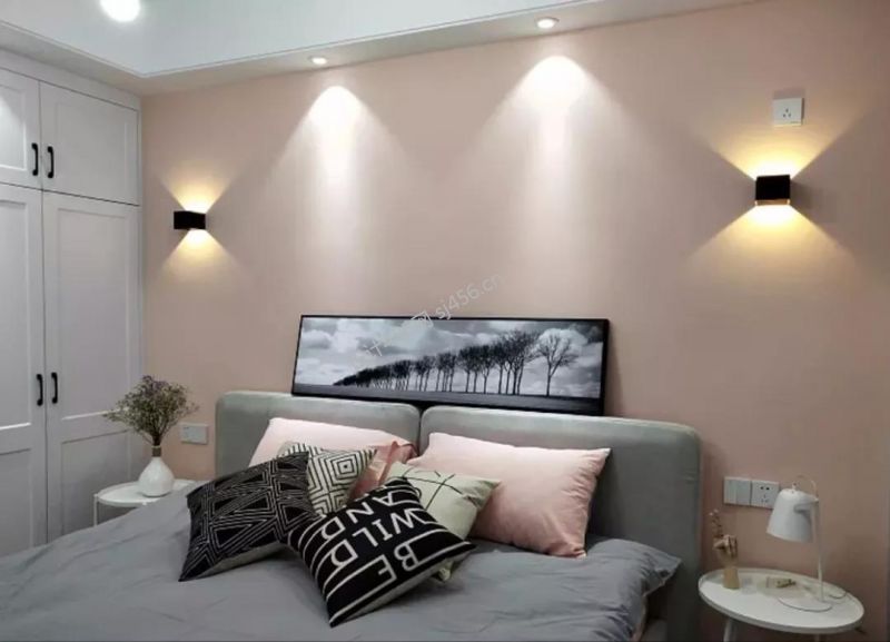 天行滨湖一号三居128平温馨风格沙卧室床头壁灯装修设计效果图