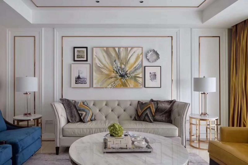 齐星花园116平米三居室美式风格客厅沙发装修设计效果图