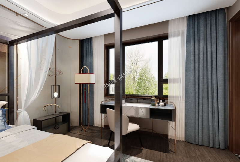 中式风格105平米卧室书桌装饰图