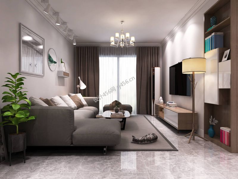彰泰名都109平北欧风格客厅吊灯设计效果图