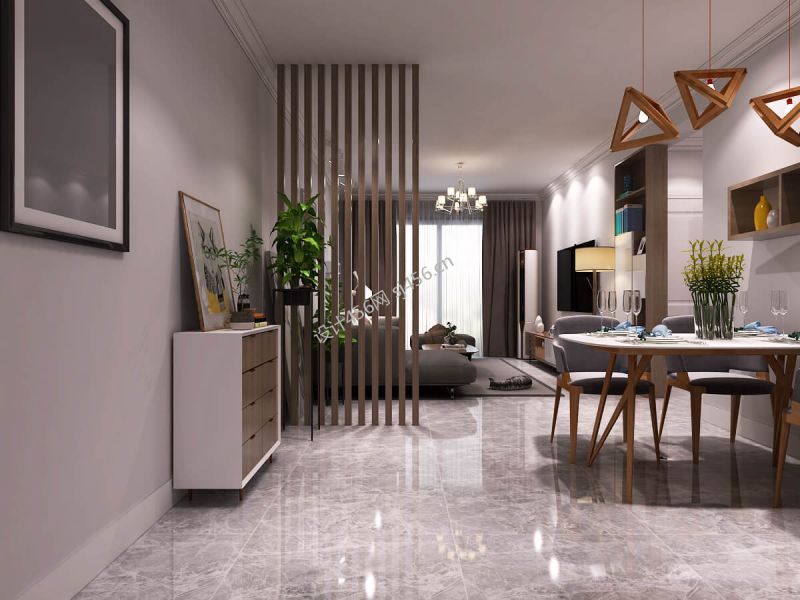彰泰名都109平北欧风格餐厅客厅隔断设计效果图