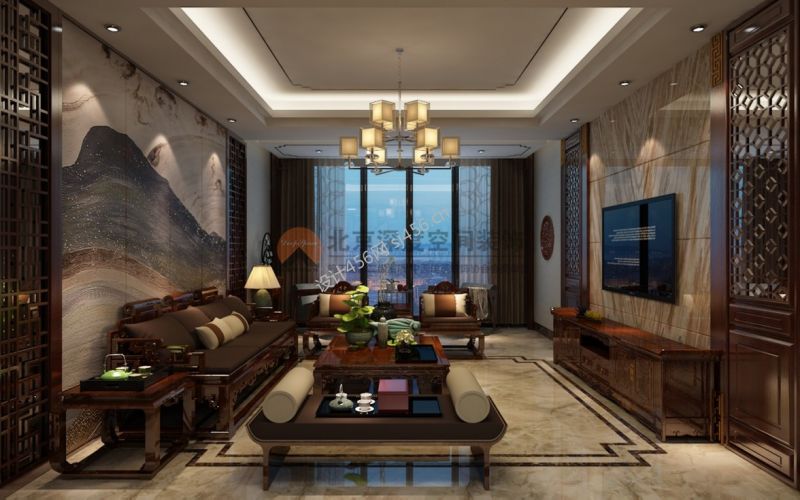 龙光普罗旺斯130平中式风格电视墙设计装饰图
