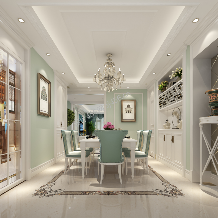 华宁桂林新都126平欧式风格餐厅酒柜装修效果图