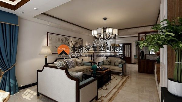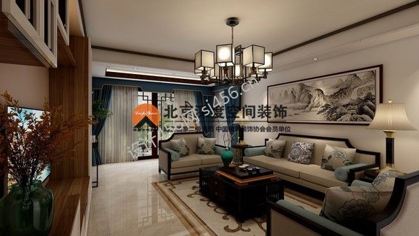 清华园122平方中式风格客厅家具摆放效果图赏析