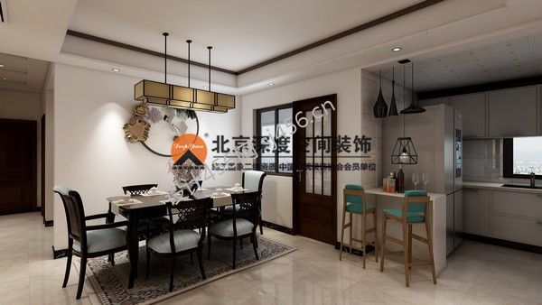 清华园122平方中式风格餐厅吊灯设计效果图赏析