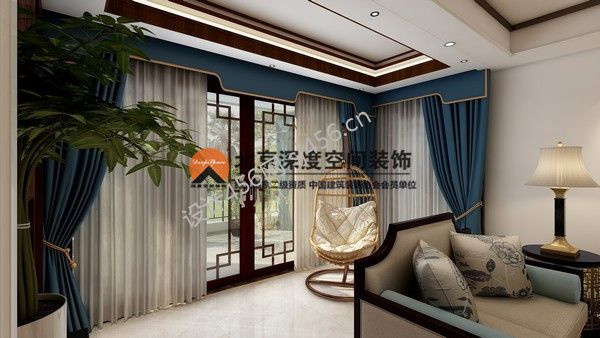 清华园122平方中式风格客厅阳台吊篮装修图片