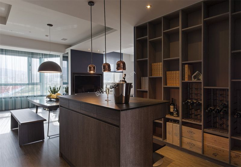 港式风格143平三居室吧台酒柜设计图片