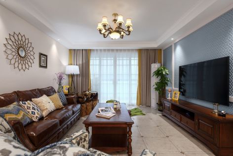 新世界珑玥103平米美式风格三室两厅装修案例风效果图