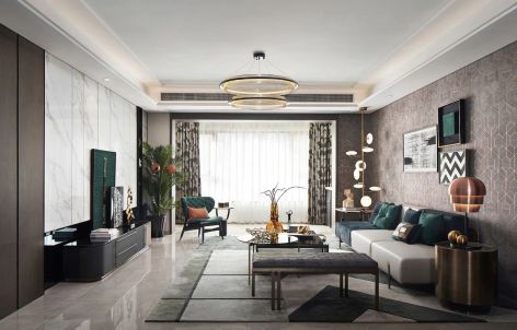 融创九樾府B区观玺116平米轻奢风格三室两厅装修案例风效果图