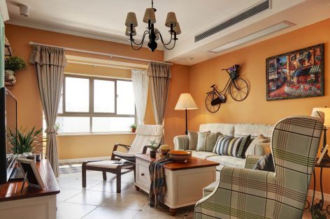 新世界观澜98平米田园风格三室两厅装修案例风效果图