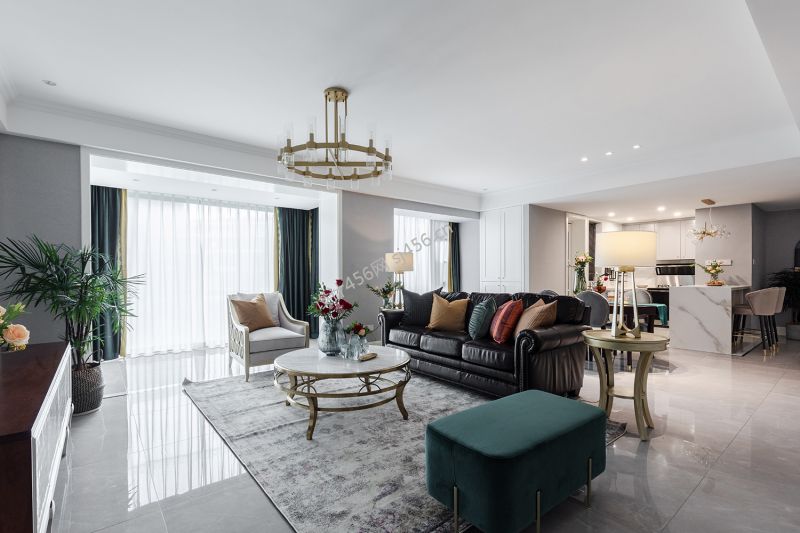 融创九樾府B区观玺115平米美式风格三室两厅装修案例风效果图