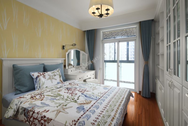 115平米美式风格三室两厅卧室窗帘装修效果图