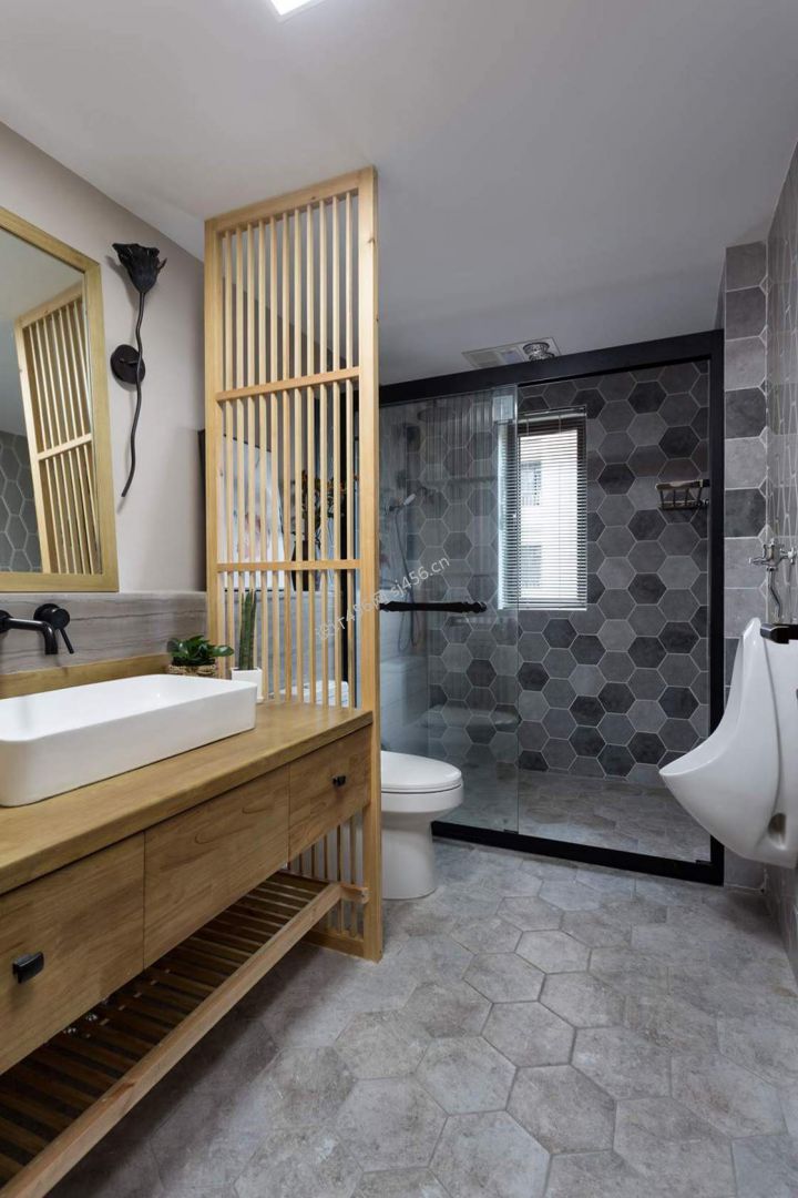 128平米日式风格三室两厅卫生间装修效果图